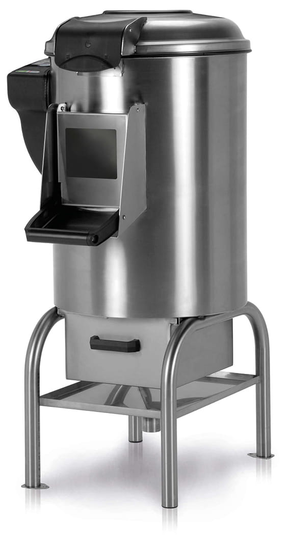 - Specjalnie podwyższona podstawa umożliwia łatwiejsze podłączenie obieraczki do kanalizacji