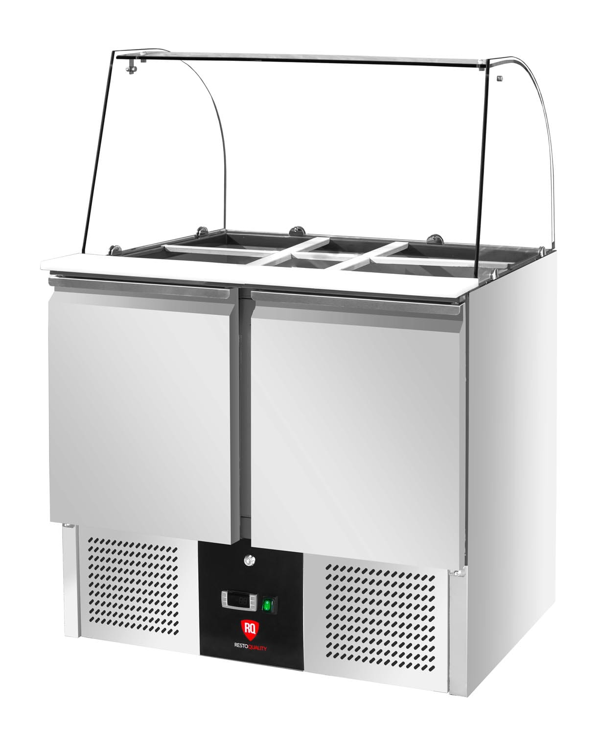 - Stół chłodniczy sałatkowy RQS900CG marki Resto Quality to profesjonalne urządzenie chłodzące, idealnie nadające się do restauracji, kawiarni, barów szybkiej obsługi oraz hoteli. Ponadto, jest niezastąpiony w pizzeriach, barach sałatkowych i lokalach serwujących kebaby i falafele