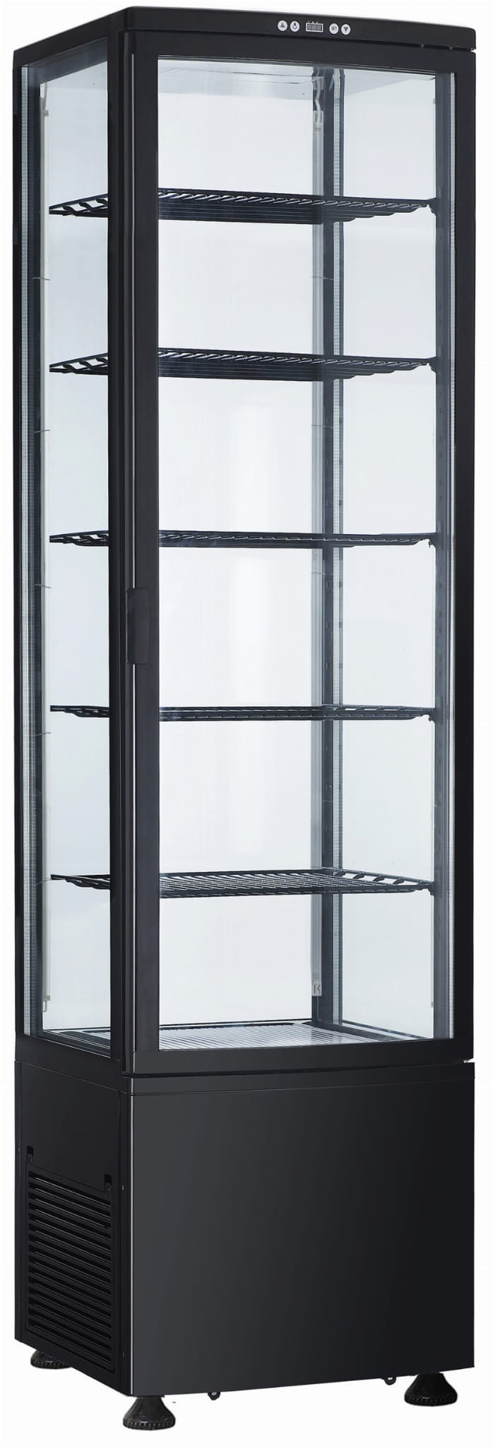 - Przeszklone boki witryny pozwalają na ekspozycję produktów z czterech stron