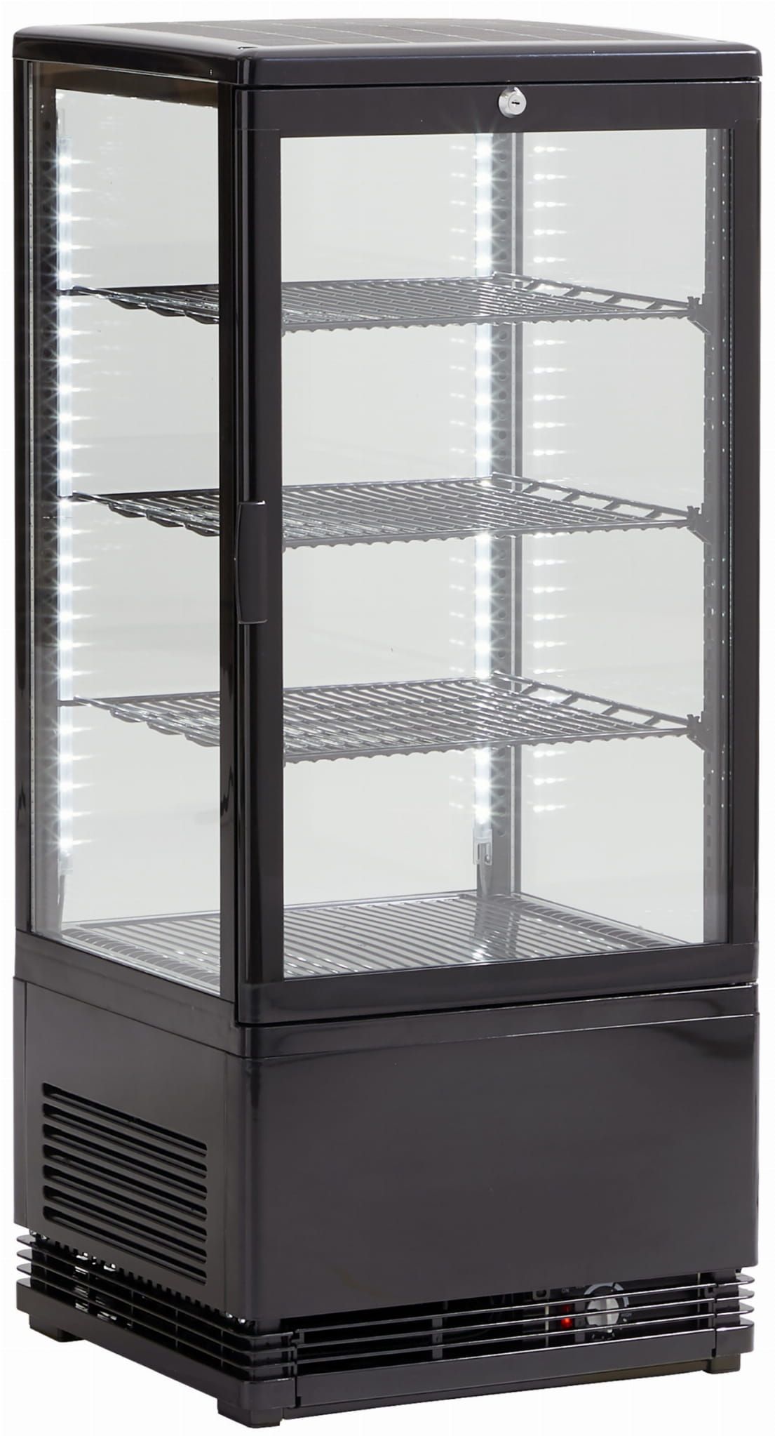 - Wewnętrzne oświetlenie LED podkreśla ekspozycję produktów