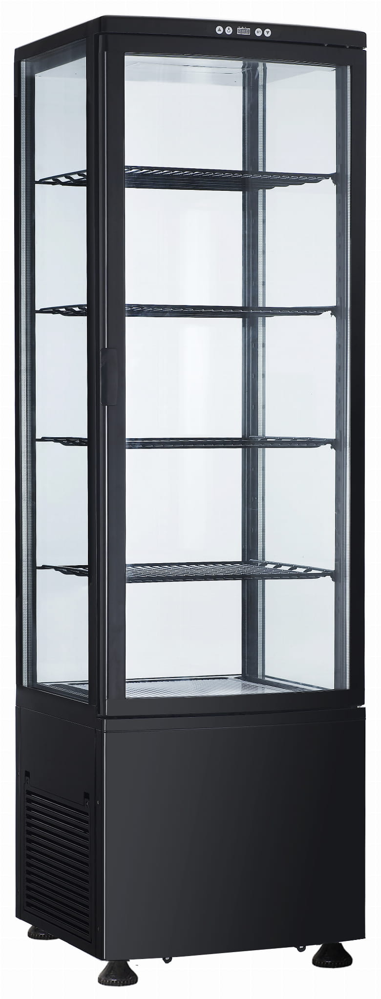 • Przeszklone boki witryny pozwalają na ekspozycję produktów z czterech stron